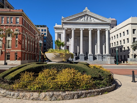 View of Lafayette Square, with the Soule Business School building and Gallier Hall in the background