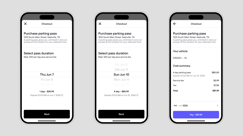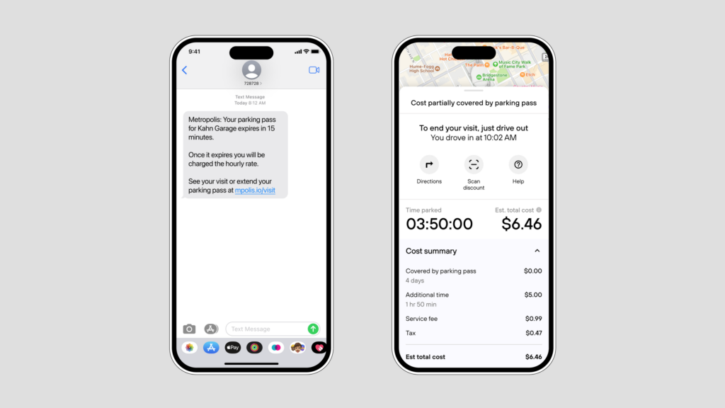 Our Vision technology will recognize your vehicle every time you enter the garage and open the gate for the duration of your pass. You will receive a text message reminding you that your visit will be ending soon. If you leave after your pass has expired, you will be charged for the additional time.